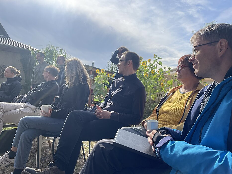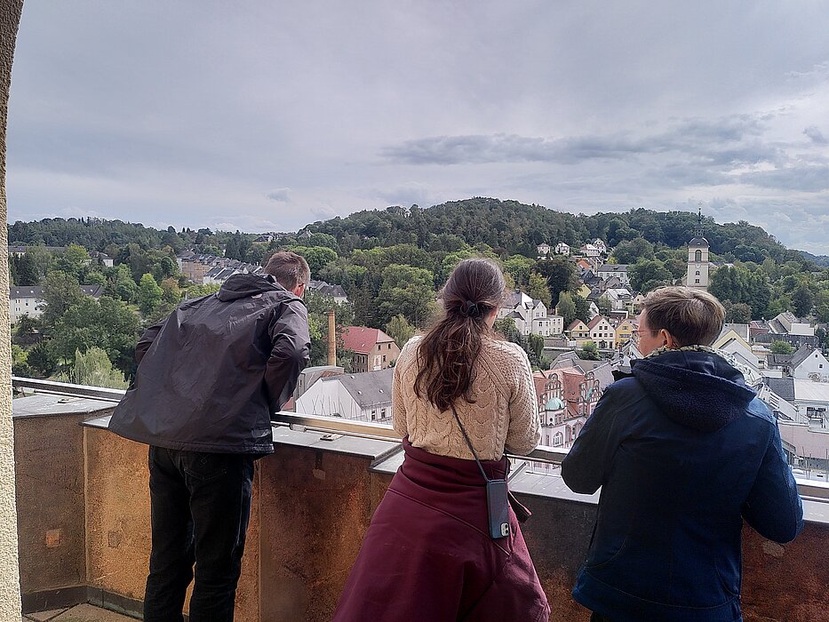 Das schöne Ambiente hat am Vormittag den richtigen Rahmen für einen intensiven Austausch zwischen den vier Teilprojekten geboten. Diskutiert wurden u.a. die Herausforderungen für die Verlängerungszeit des Projektes bis Ende 2025, bei denen sich einige Ähnlichkeiten zwischen den Teilprojekten herauskristallisiert haben. Anschließend blieb noch Zeit, die Stadt Waldheim bei einer Tour auf den Rathausturm und bei einer Wanderung auf den Kreuzfelsen zu erkunden. Gleichzeitig war das die Möglichkeit, den Austausch im Team fortzusetzen.
