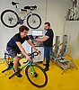 Im Bild zu sehen sind Richard Mioska sowie Klaus Schneller, fotografiert von Paul Satke – allesamt wissenschaftliche Mitarbeiter im bikelab und fahrradbegeisterte Maschinenbauer.
