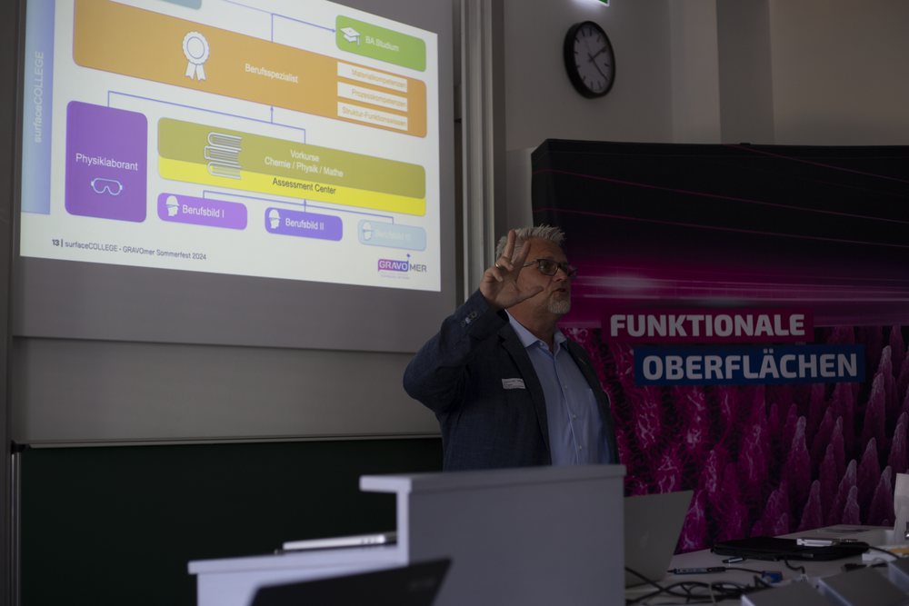 Die Anlage ist ein integraler Bestandteil des virtuellen Kompetenzzentrums von GRAVOmer, einem Netzwerk für mikrostrukturierte Funktionsoberflächen, und stellt einen wichtigen Meilenstein für dessen Weiterentwicklung dar. Das Kompetenzzentrum unterstützt Unternehmen bei der Erschließung neuer Märkte und bei der Durchführung von Pilotprojekten in der Industrie. Darüber hinaus liegt ein Schwerpunkt auf der Aus- und Weiterbildung von Mitarbeitenden und Partnern. Auch Transferprojekte mit externen Industriepartnern können nun gemeinsam durchgeführt werden. Zum Netzwerk gehören rund 70 Partner aus Wissenschaft und Wirtschaft, zumeist aus dem mitteldeutschen Raum, darunter die HTWK Leipzig, das Forschungsinstitut für Leder und Kunststoffbahnen (FILK) in Freiberg, die Technische Universität Dresden oder das Leibniz-Institut für Oberflächenmodifizierung (IOM) in Leipzig.